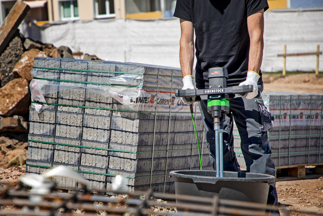 1. Mischen im Rechtslauf von höchstviskosen und steifen Materialien, z.B. Fliesenkleber, Fertigmörtel, -putz, Estrich, Epoxydharze, Dichtungsmassen, Granulate, Mehrkomponentenmaterialien, Beschichtungen